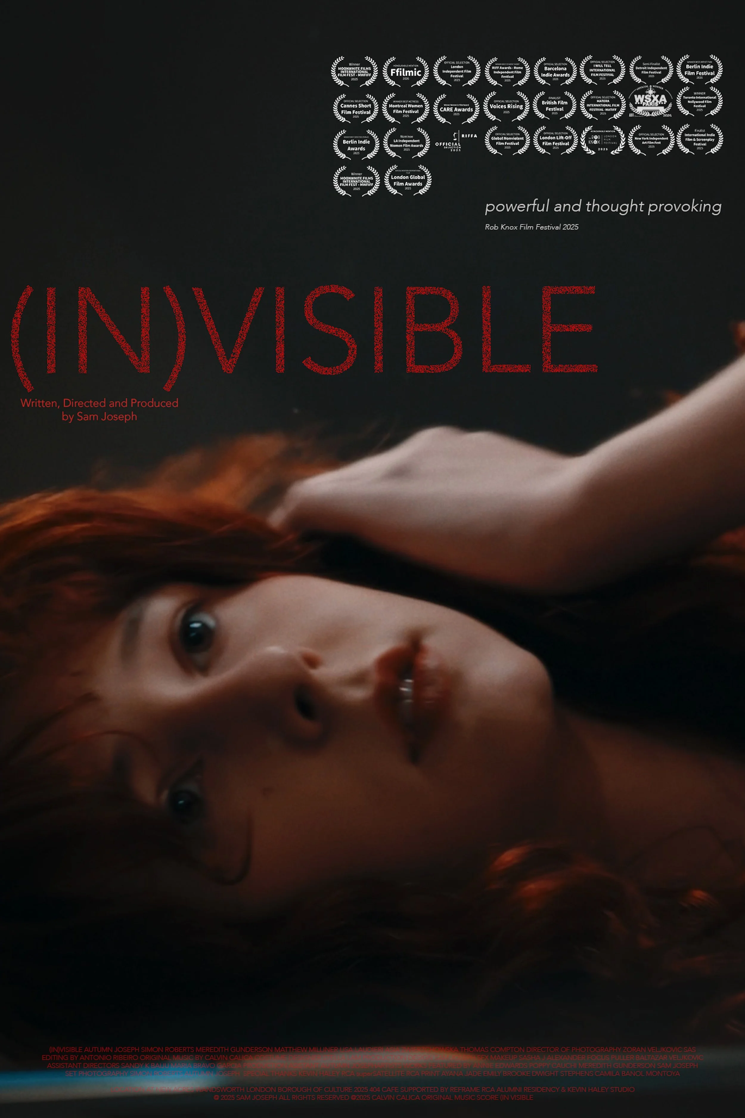 I have always sought to create work that challenges and reframes perceptions, inspiring meaningful conversation. Through (IN)VISIBLE, I aimed to craft a visual (collaborating with DOP Zoran Veljkovic) and emotional journey through experimental film methods that invites audiences to reflect on the structures we live within, the voices we fail to hear, and the stories we often leave untold however uncomfortable that may be.